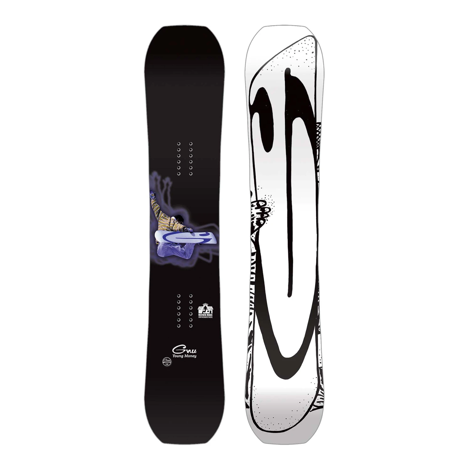 Designed for youngsters taking it to the next level in the park the GNU Young Money Snowboard 2024 is a classic twin shape that prefers the park but can happily handle anything the mountain throws at it. Featuring a poppy C2 rocker camber hybrid contour with steak knife-like serrated edges for fine-tuning precision and control no matter the conditions. The eco-sublimated graphic throws it back to the era where punk and skate aesthetics clashed on slopes with an authentic 90’s ad-inspired graphic. Ultra-durable construction is designed for taking a beating from the rails to the dance floor, letting their skills flourish this season.