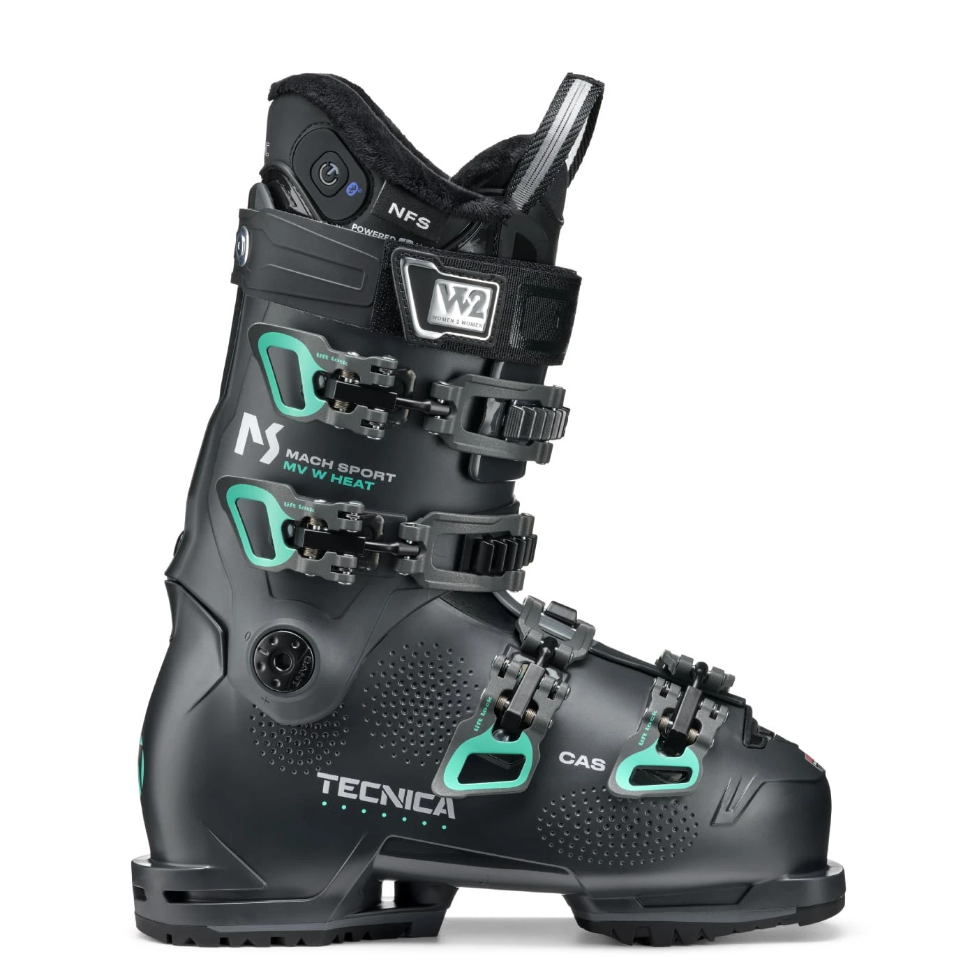 Intermediate level skiers will enjoy Tecnica’s Mach Sport MV 85 W Heat ski boots, made with an N.F.S. Liner, C.A.S Shell, and Cuff Adapt to create a strong feeling out of the box that has thermally activated molding to your leg and foot. Celliant® Insulation converts body heat into infrared energy delivering superior warmth and comfort. Infrared penetrates deep into the tissue to increase circulation, oxygen and blood flow resulting in improved performance, thermal regulation and faster recovery. The learning curve becomes a great place to spend time with the Mach Sport HV 85 and changes your whole attitude about ski boots.
