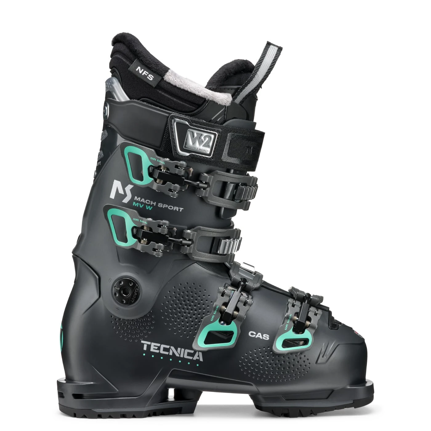 Tecnica’s Mach Sport MV 85 W boots offer the perfect balance between comfort and performance, great for intermediate level female skiers with a medium volume foot. The Mach Sport MV 85 W is packed with women’s specific features like the Cuff Adapt System that allows easy calf volume adjustments for a variety of lower leg shapes. In addition the Women’s Natural Stance feature places you in a perfect position for balance and stability. The NFS Celliant liner is both anatomically shaped for a secure fit along with offering superior warmth and comfort. The 85 flex provides smooth, progressive support. Pre-mounted GripWalk soles deliver safe and easy walkability on slick terrain. The Mach Sport MV 85 women’s boots give you the comfort to stay out on the mountain longer with the performance to support taking your skiing to a whole new level.